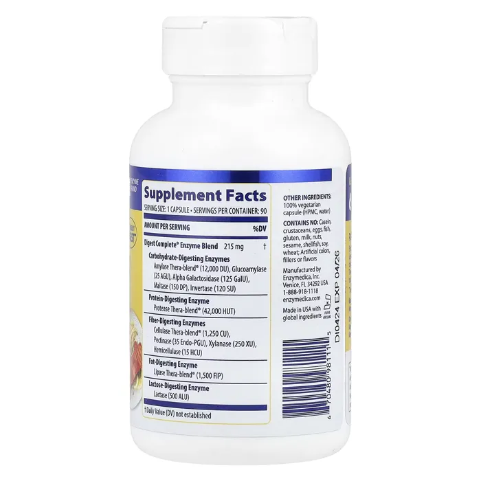 مکمل Digest Complete از برند Enzymedica یک راهکار جامع برای بهبود هضم و جذب مواد مغذی در بدن است. این قرص ضد نفخ خارجی با فرمولاسیون منحصر به فرد خود، به فرایند هضم غذا کمک کرده و از بروز مشکلاتی مانند نفخ و گاز جلوگیری میکند. با استفاده از آن، میتوانید از انرژی بیشتری بهرهمند شوید و کیفیت زندگی خود را بهبود بخشید.مکمل Digest Complete از برند Enzymedica با هدف ارتقاء سلامت دستگاه گوارش طراحی شده است.