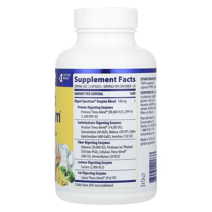 قرص دایجستیو انزایمدیکا Digest Spectrum Enzymedica، یک محصول انزیمی پیشرفته است که بهطور خاص برای حفظ سلامت دستگاه گوارش طراحی شده است. این مکمل با فرمولاسیون منحصر به فرد خود، به تجزیه کامل وعدههای غذایی کمک کرده و علائم ناخوشایند مانند نفخ و گاز معده را کاهش میدهد. با استفاده از فناوری انحصاری Thera-blend®، این قرص ضد نفخ فوری بزرگسالان به شما این امکان را میدهد که از غذاهای مختلف لذت ببرید بدون اینکه نگران عوارض جانبی آن باشید.تحقیقات نشان دادهاند که بسیاری از افراد دچار مشکلات گوارشی ناشی از عدم تحمل غذایی هستند. این مشکلات میتوانند شامل نفخ، گاز، و سوء هاضمه باشند. مکمل Digest Spectrum با ترکیب آنزیمهای مختلف، به تجزیه بهتر مواد غذایی کمک کرده و علائم ناخوشایند را کاهش میدهد. این محصول بهخصوص برای کسانی که به لاکتوز، گلوتن یا کازئین حساسیت دارند، بسیار مفید است.