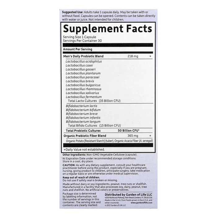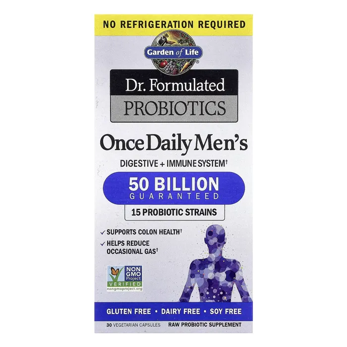 پروبیوتیکهای روزانه مخصوص مردان از برند Garden of Life، یک مکمل غذایی منحصر به فرد است که بهطور خاص برای حمایت از سلامت مردان طراحی شده است. این محصول Dr. Formulated Probiotics, Once Daily Men's حاوی 50 میلیارد واحد تشکیلدهنده زنده (CFU) و 15 نوع پروبیوتیک مختلف است که به تقویت سیستم ایمنی، بهبود سلامت گوارش و حمایت از سلامت روده کمک میکند. این پروبیوتیکها نیازی به نگهداری در یخچال ندارند و میتوانند در دماهای معمولی پایدار بمانند.این پروبیوتیکها توسط دکتر دیوید پرلموتتر، متخصص مغز و اعصاب و نویسنده پرفروش نیویورک تایمز، طراحی شده است. او با توجه به نیازهای خاص مردان، این فرمول را ایجاد کرده است تا با افزایش تعداد پروبیوتیکهای مفید، به بهبود سلامت گوارش و سیستم ایمنی کمک کند. این قرص پروبیوتیک شامل ترکیباتی است که نسبت به اسید معده و صفرا مقاوم هستند و میتوانند به راحتی در رودهها عمل کنند.