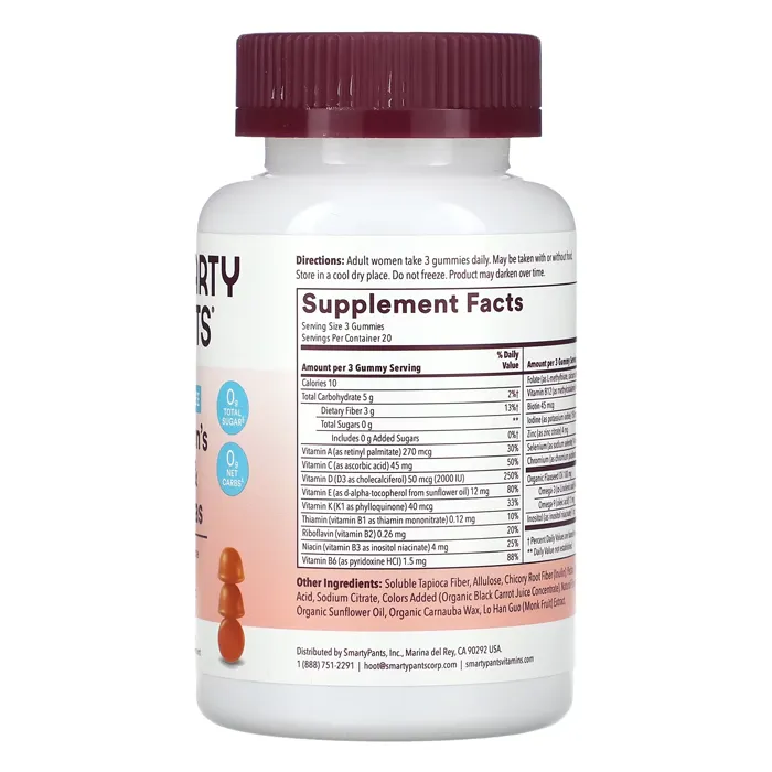 مولتی ویتامین و امگا زنان اسمارتی پنتس بدون قند، طعم پرتقال Women's Multi & Omegas, Sugar Free, Orange یک مکمل غذایی روزانه است که بهطور خاص برای تأمین نیازهای تغذیهای زنان طراحی شده است. این محصول بدون قند و با طعم خوشمزه پرتقال، حاوی ویتامینها و مواد معدنی ضروری است که به تقویت سلامت عمومی و سیستم ایمنی کمک میکند. با ترکیبی از امگا-۳، ویتامین C، زینک، ویتامین B12 و ویتامین D، این مولتی ویتامین بهعنوان یک مکمل کامل برای حمایت از سلامت زنان عمل میکند.